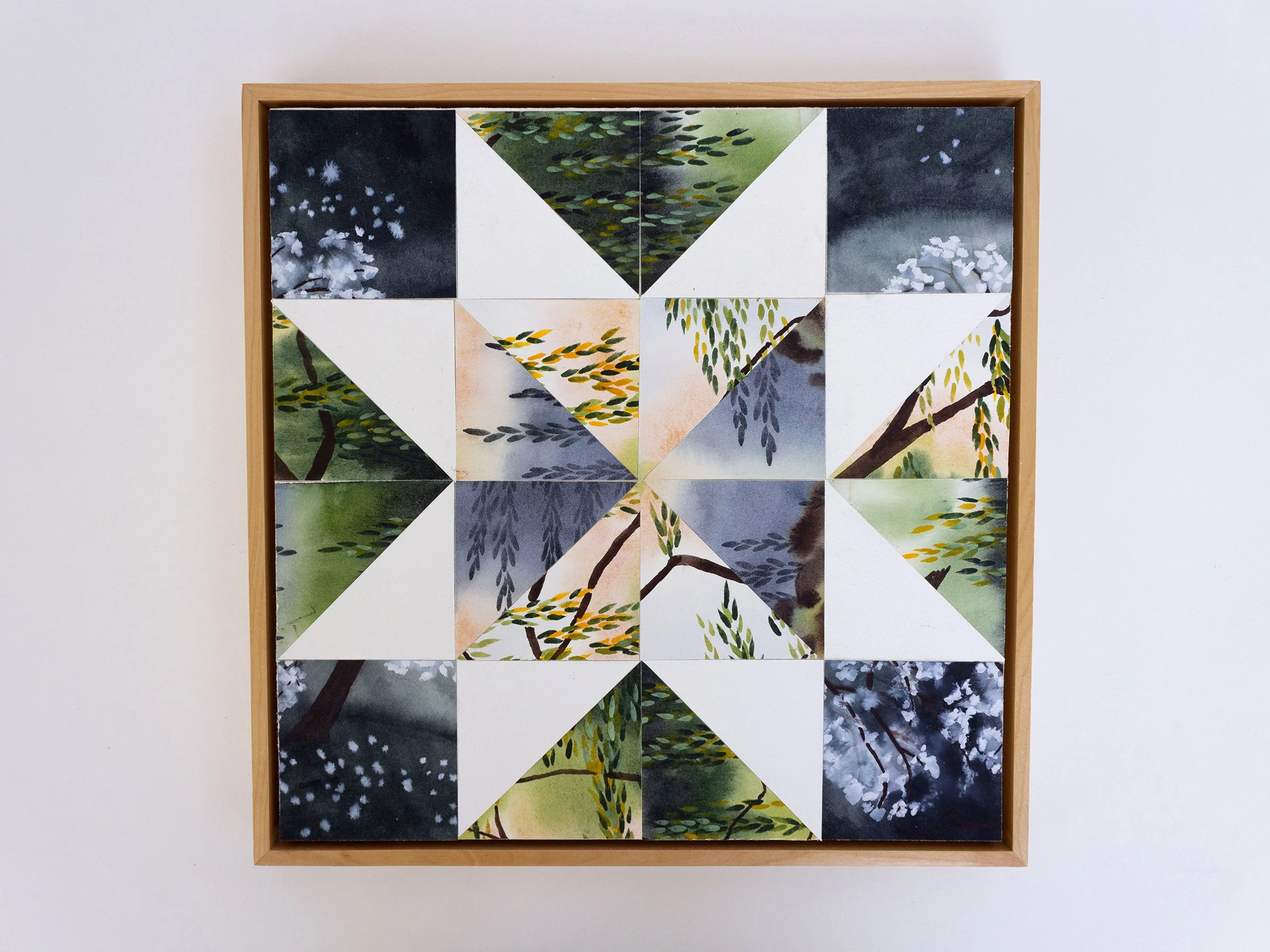 + Cut watercolor paper mounted on 12×12 birch panel
