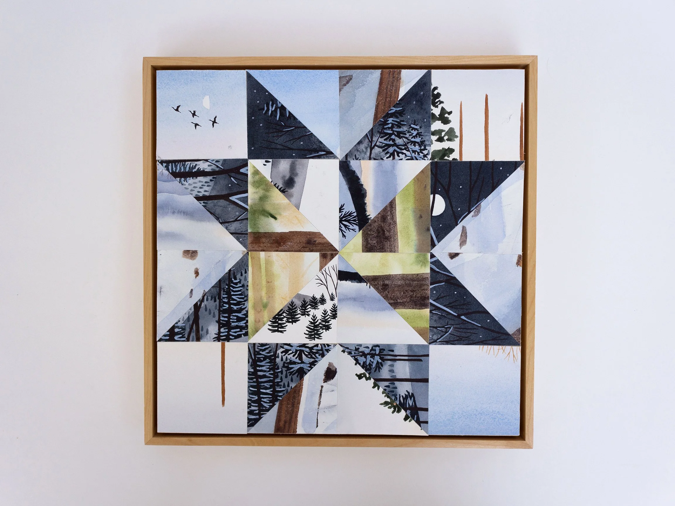 + Cut watercolor paper mounted on 12×12 birch panel